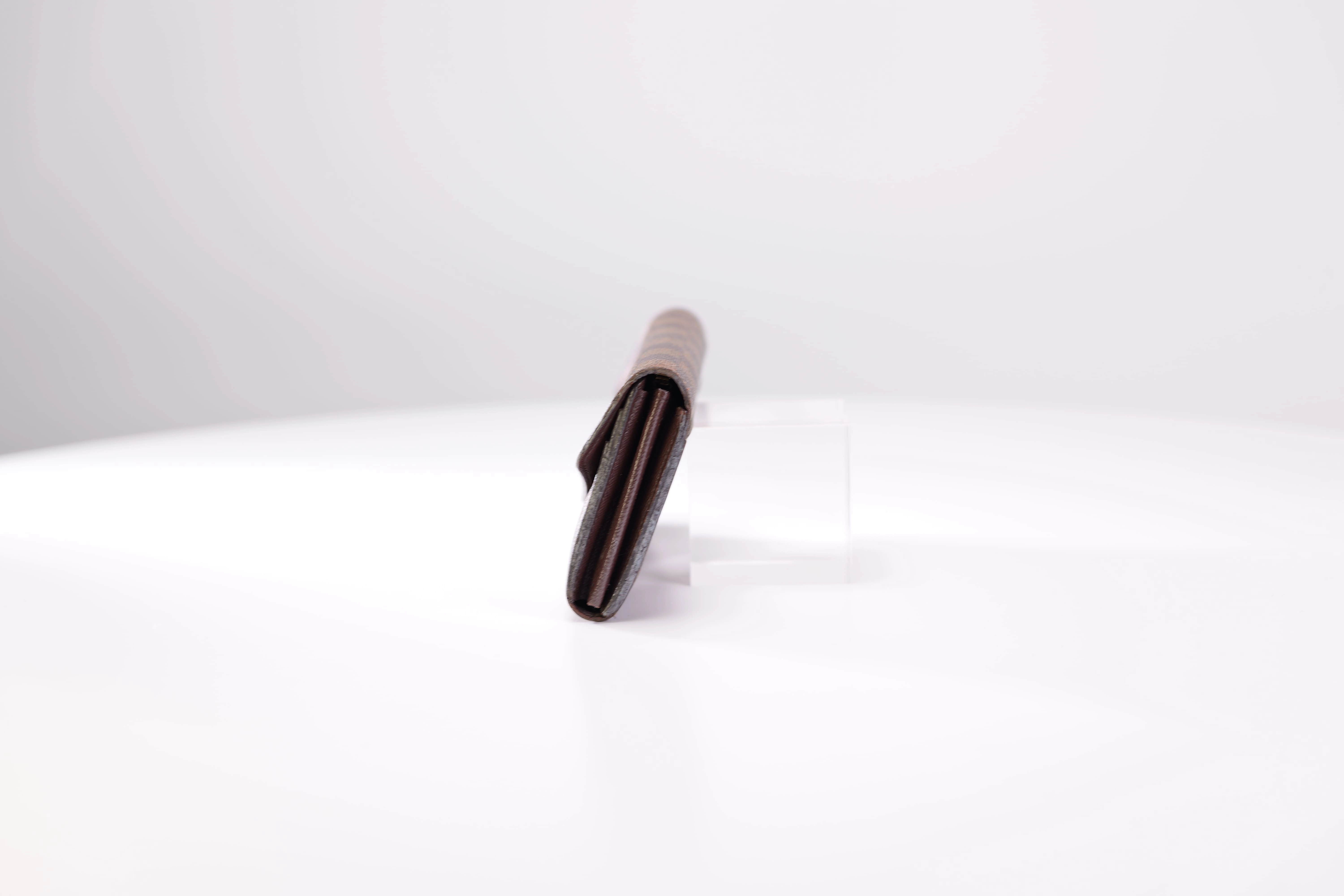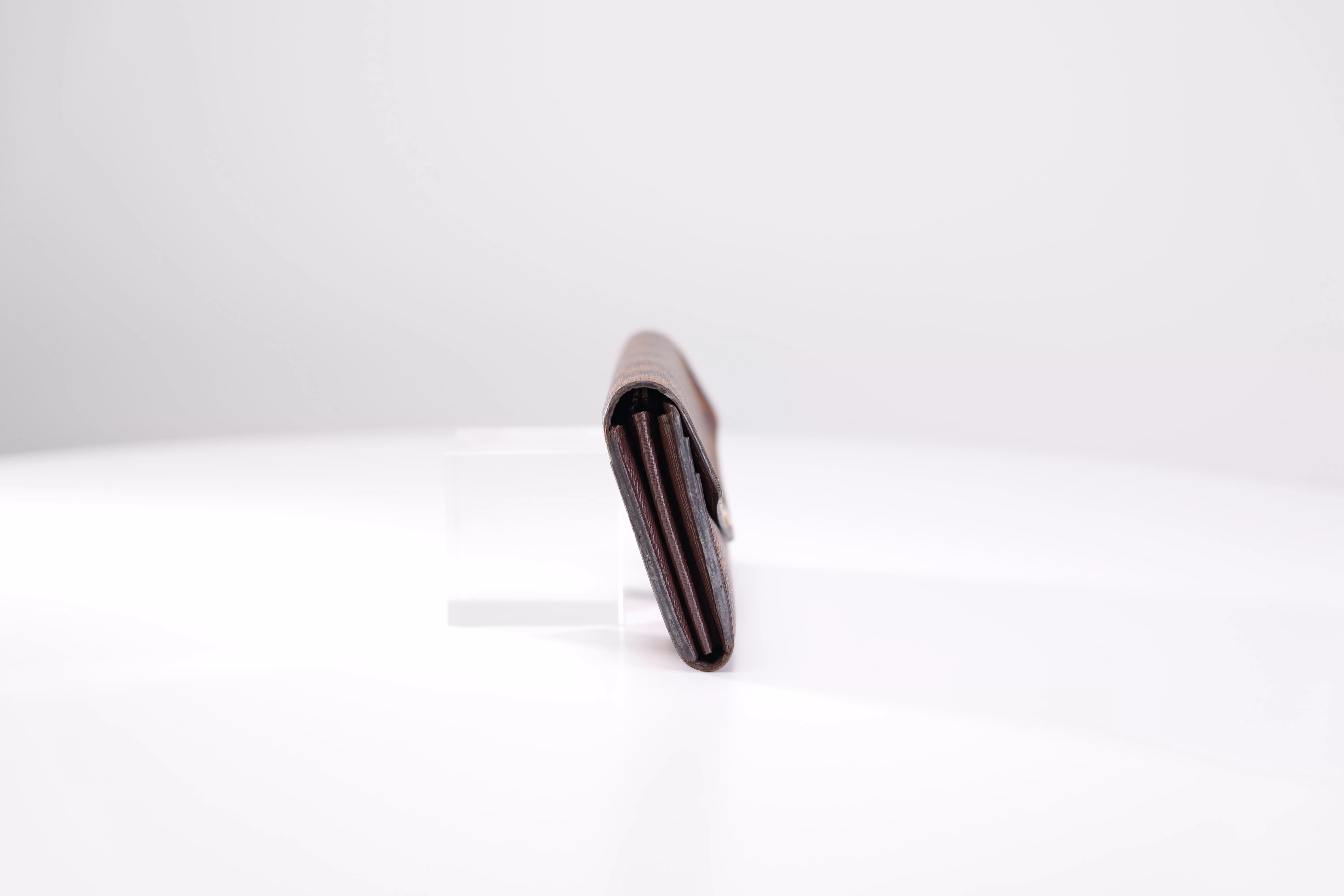 "這款長夾最大的特色就是正面的 V 型翻蓋設計